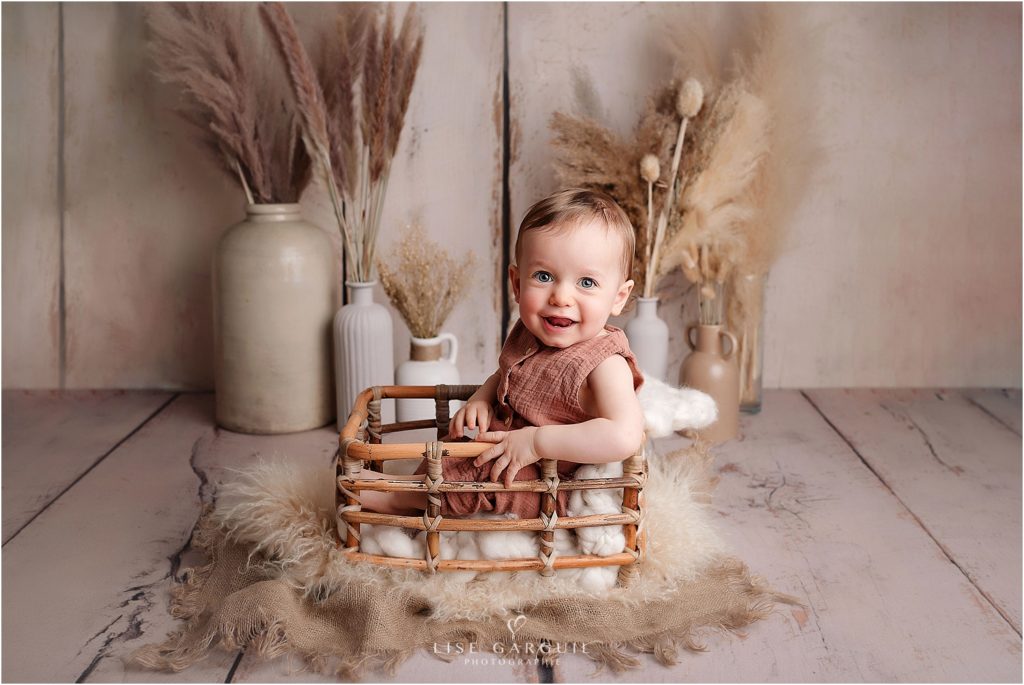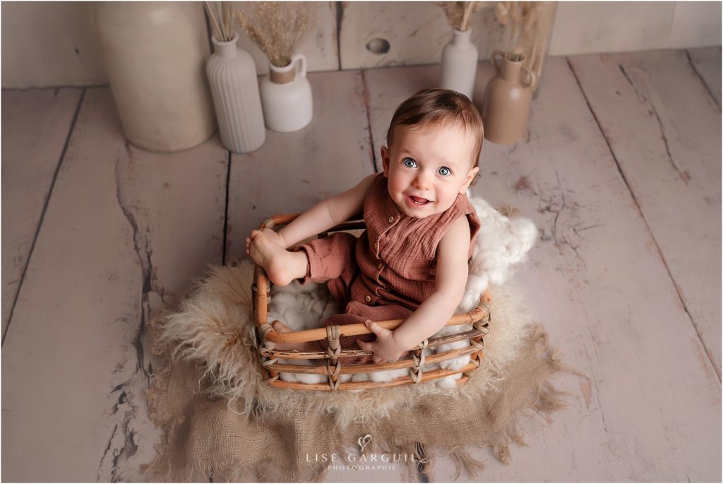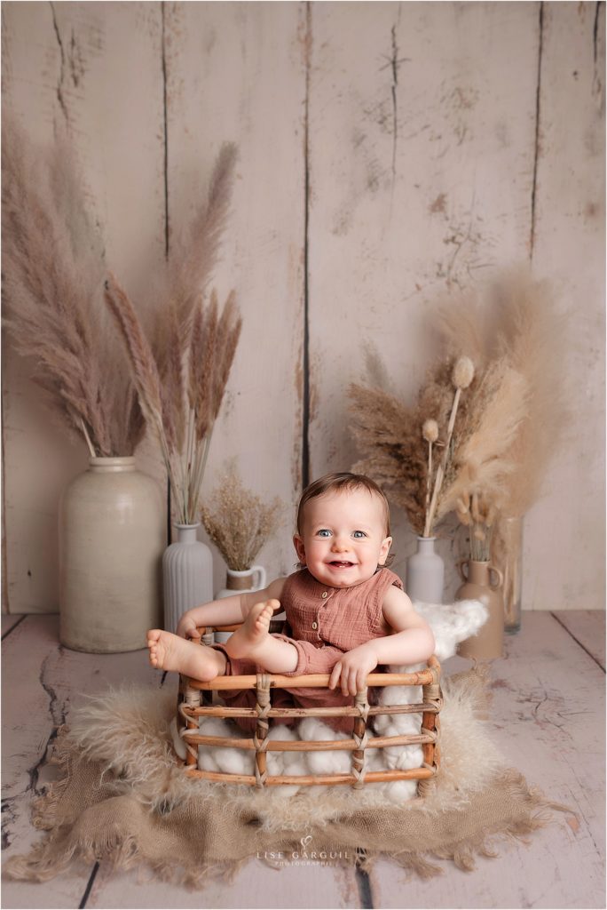 Merci d’envisager de me confier vos souvenirs, je serais honorée de pouvoir photographier votre bébé! Ce type de séance se réalise à partir de 4 mois et plus généralement entre les 6 et 12 mois de votre enfant environ, il est préférable de réserver votre place 2 à 3 mois à l’avance, mais n’hésitez pas à me contacter, cela peut arriver que j’ai des places de dernière minute. La séance est axée sur bébé, mais quelques photos avec le ou les ainés sont possibles. La prise de vues se fond au studio. Les séances sont stylisées, c’est à dire que vous n’avez pas besoin d’apporter quoi que se soit en tenues. Tout est prévu au studio pour créer des images artistiques avec accessoires et vêtements faits-mains rigoureusement sélectionnés. Si vous souhaitez des photos de famille plus dynamiques, vous pourrez vous orientez vers une séance lifestyle en extérieur.